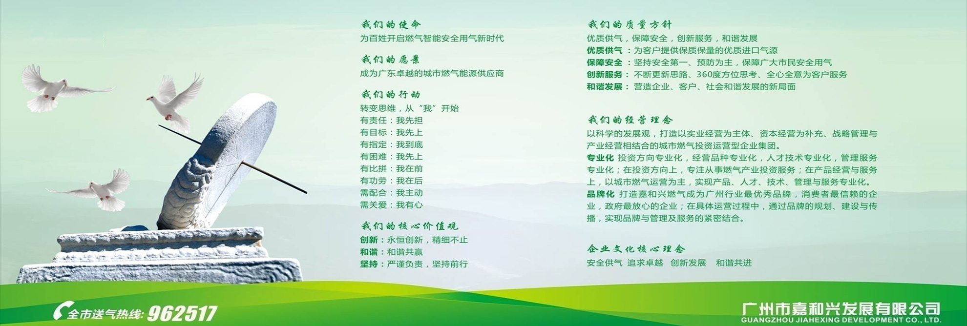 公司在廣州經(jīng)營(yíng)多年的液化氣的過(guò)程中,積累了大量的行業(yè)資源,積極配合政府管理及倡導(dǎo)行業(yè)溝通協(xié)調(diào)。現(xiàn)在“嘉和興”已成為廣州液化氣市場(chǎng)的著名品牌。